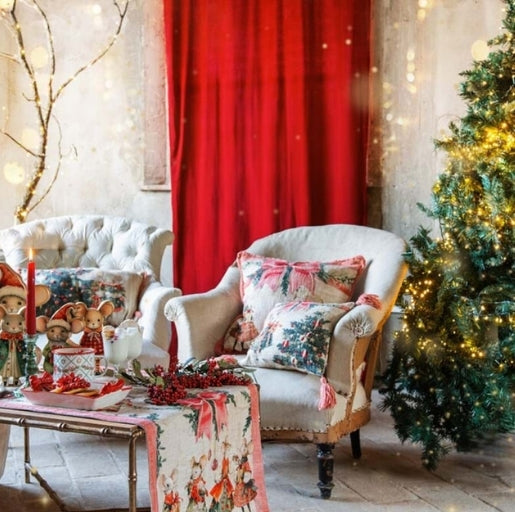 CUSCINO STAMPATO E RICAMATO CON NAPPE "FAVOLA DI NATALE"